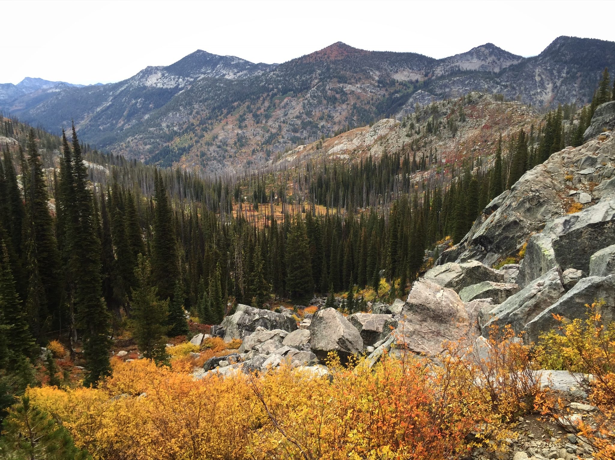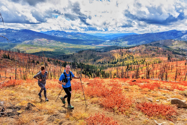 Finally, car stuffed with far too much food, we departed for Burgdorf, for IMTUF, for destiny. We stopped in McCall for pizza then continued on into the mountains. The trees were painted with fall colors, mixed in with the black of burned stumps and branchless trunks left from some recent fire. We started to notice aid station names! The sense that this race was something special grew as the sun set over the huge granite domes in the distance.