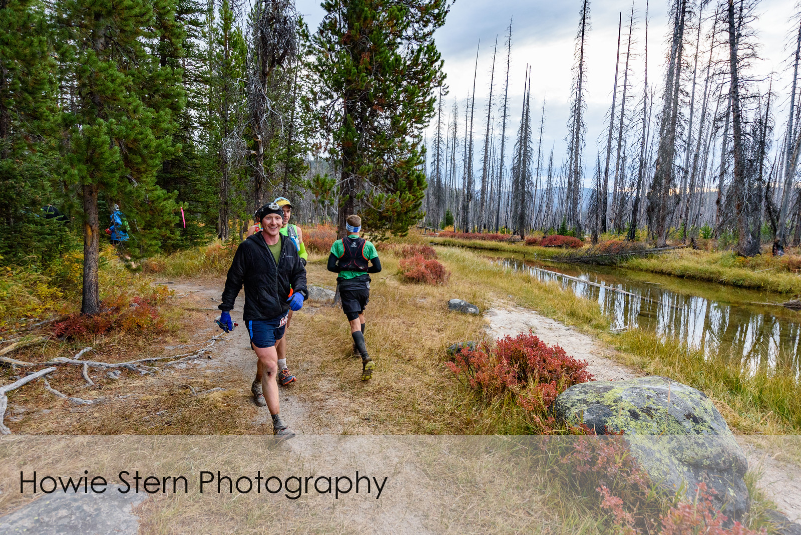 We were running a fast pace line on sandy singletrack as the light revealed the gorgeous fall colors all around us. I remember running along a stream at the bottom of a valley, rolling in line with the top group, not trying to pass anyone this early in the race, just enjoying the good feeling in my legs and stretching out.