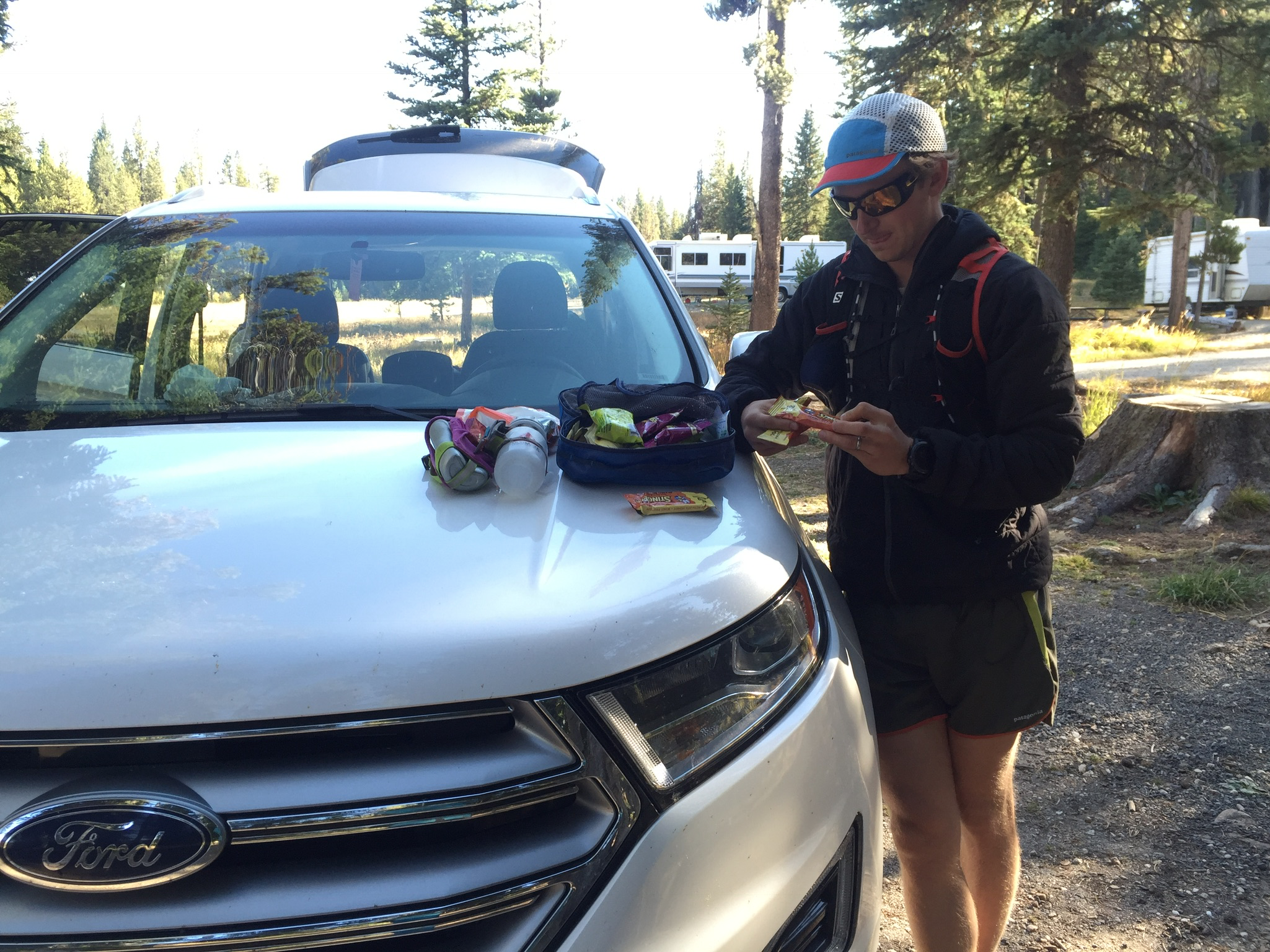 One more shakeout run at Ruby Meadows. The downhills felt so good. Did that mean I should go out hard? Yes, I guess it did. We cooked dinner back at the campsite and I wrote out a rough pacing guide for Jenna, packed up my treats and spent about two hours trying to decide if I should carry a bladder or a hand bottle at the start the next morning. My mind’s ability to make decisions was fully gone.