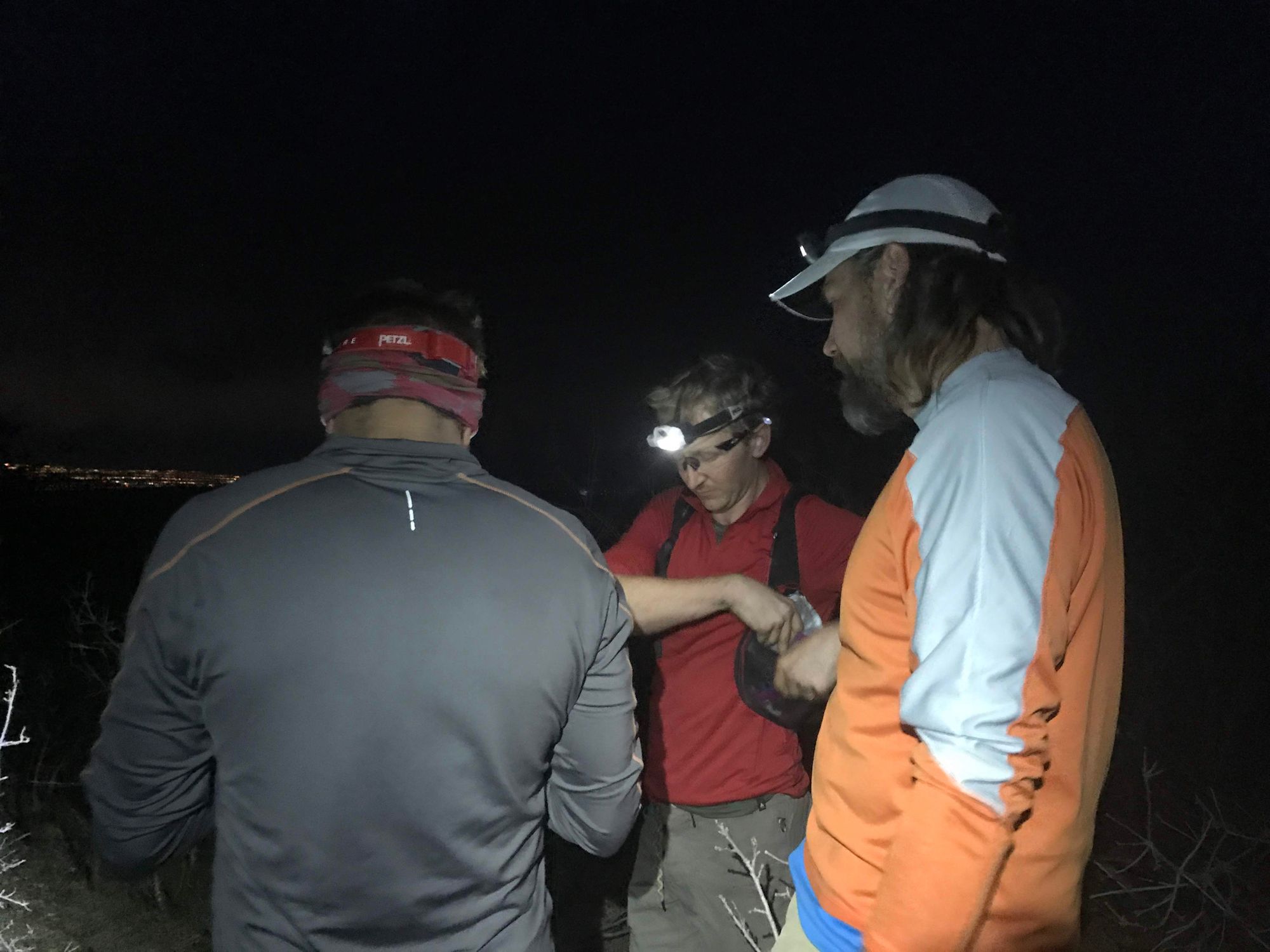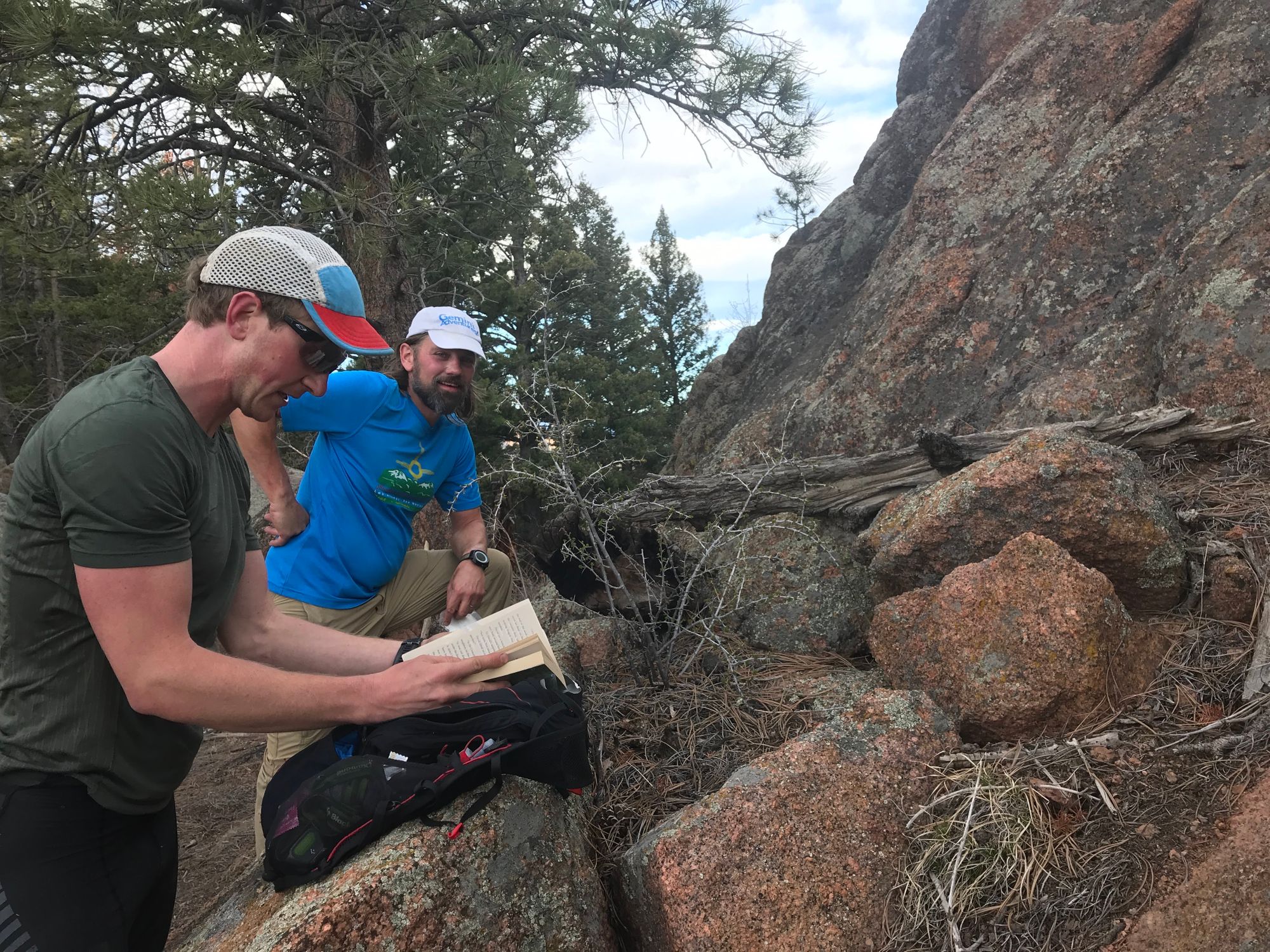 We met up with Matt on the climb up to the Chief’s loop. Here we are, trying to find the first book, which eluded us for over an hour. We almost left before doubling back and finally finding the thing.