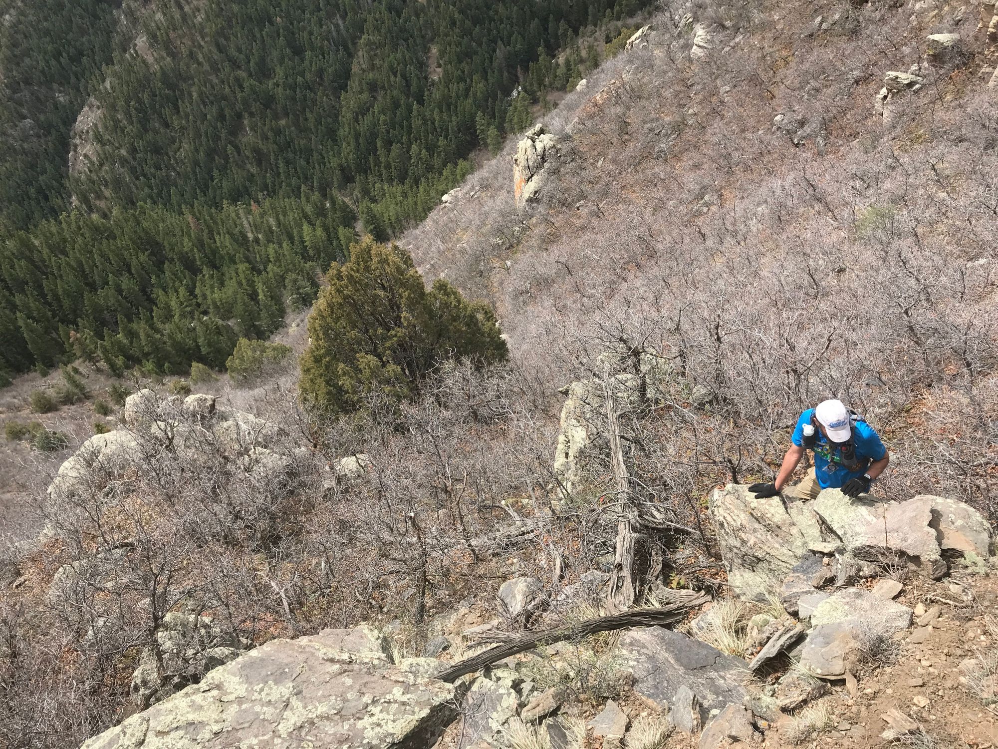 We nailed Suffer with almost no scrub oak… except for the big climb up to “Jason’s Knob”, as Sherpa John likes to mutter late at night, mouth full of the fried-chicken nightguard he pops in each evening before bed.