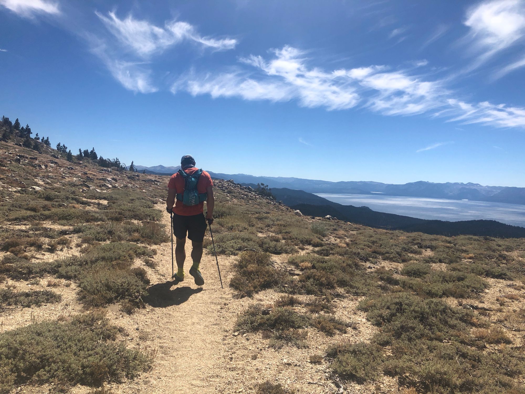 The next level in this grand game was hot and beautiful. I had run this portion of the course with Jenna in 2016, when she came in 3rd at the Tahoe Rim Trail 50. (I ran 20 miles in a running skirt and huaraches - a story for another time.) More granite boulders and white sand, and lovely climbing into the cooler temperatures at higher altitude. I called Jenna on FaceTime while Jason ran off into the rocks to purge again.