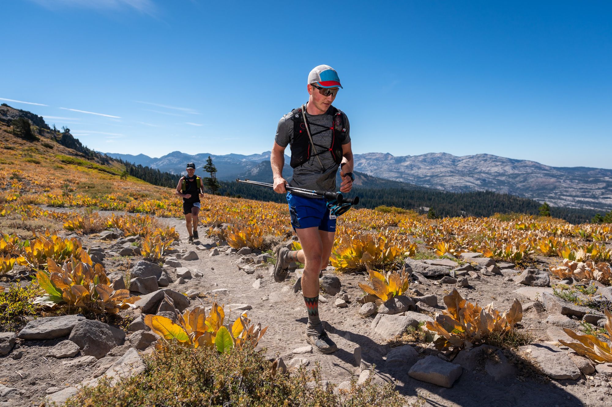 Up ahead we saw Howie Stern, the Tahoe 200 official race photographer, perched behind a set of boulders. I dropped back behind J to make sure I wasn’t blocked in my photo. It’s not terribly epic: